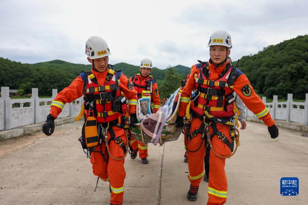8月6日,吉林市消防救援支隊隊員將曲鳳霞轉運到安全地帶。
