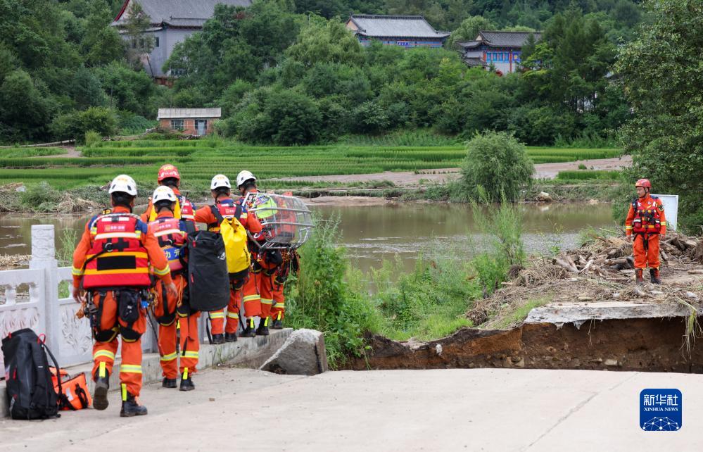 8月6日,吉林市消防救援支隊隊員穿過斷橋。
