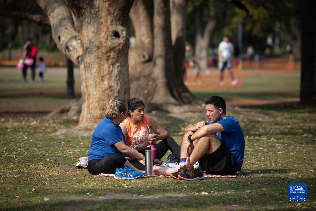8月6日,人們在阿根廷首都布宜諾斯艾利斯的一處公園休閑。