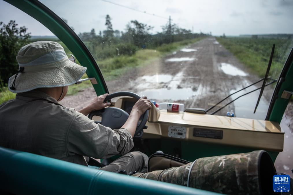 8月2日,在湖北石首麋鹿國家級自然保護區,工程師張玉銘駕駛車輛前往麋鹿監測點。