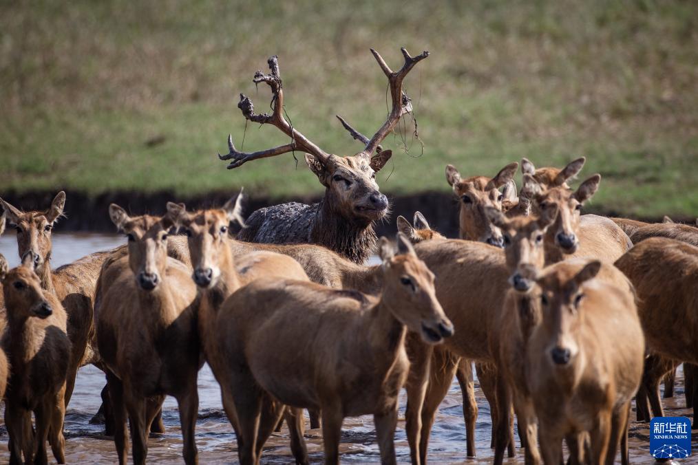 “目前我們觀測到保護區內已經形成10多個麋鹿繁殖群體,大小不一?!焙笔作缏箛壹壸匀槐Wo區管理處工程師張玉銘介紹。截至5月25日,保護區今年新增460頭麋鹿幼崽,整個保護區的麋鹿種群目前近2000頭。