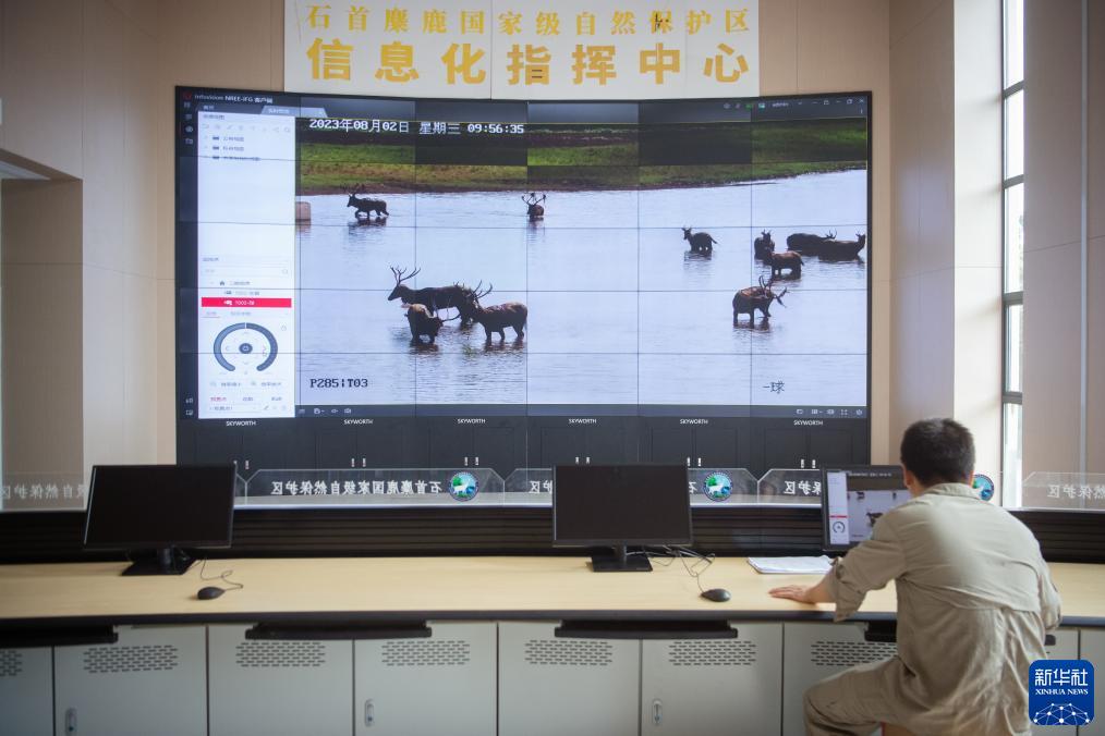 8月2日,在湖北石首麋鹿國家級自然保護區,工程師楊濤在測試信息化平臺系統。近年來,湖北石首麋鹿國家級自然保護區分期分階段開展信息化建設。目前,保護區正在開展保護區信息化三期建設,以求實現保護區科學化、規范化、數字化、智能化管理。