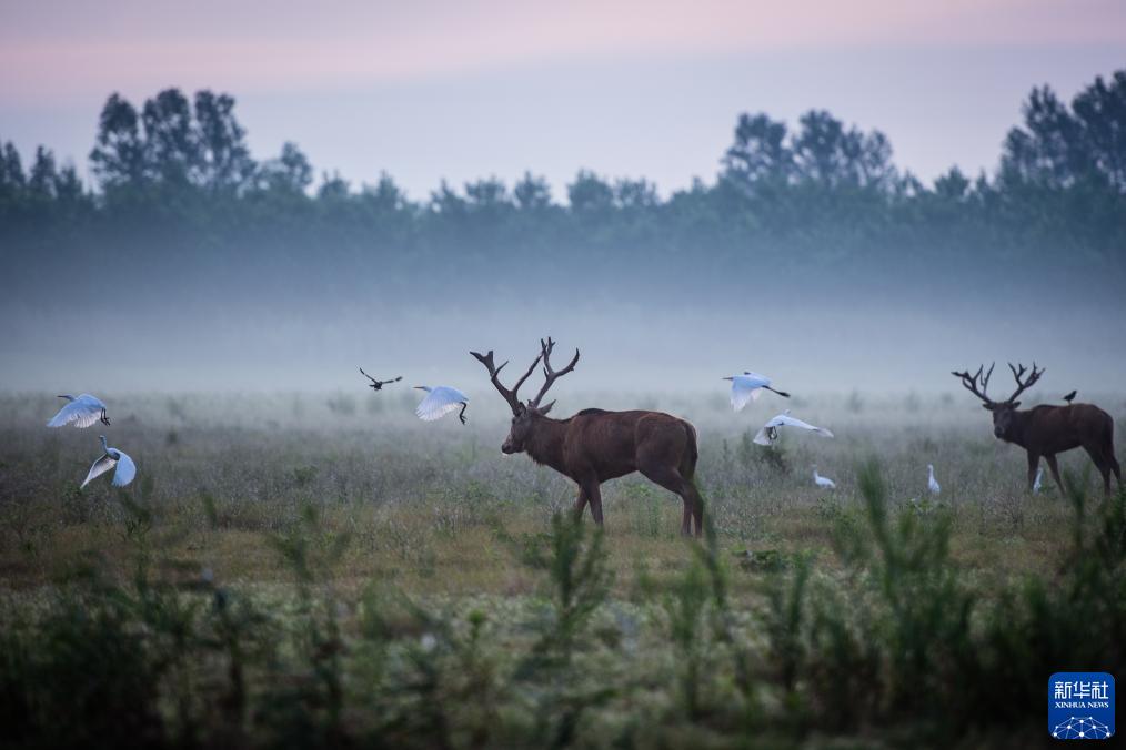 時至盛夏,位于湖北天鵝洲長江故道邊的湖北石首麋鹿國家級自然保護區迎來了一場夏日的狂歡。