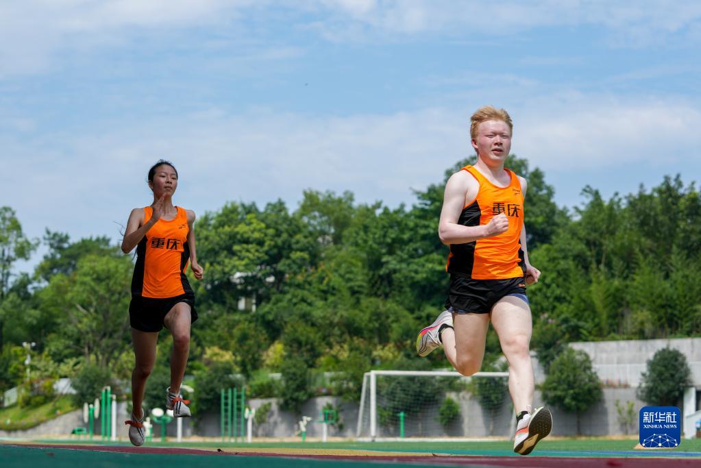 8月4日,重慶市特殊教育中心田徑隊隊員在進行短跑項目訓練。