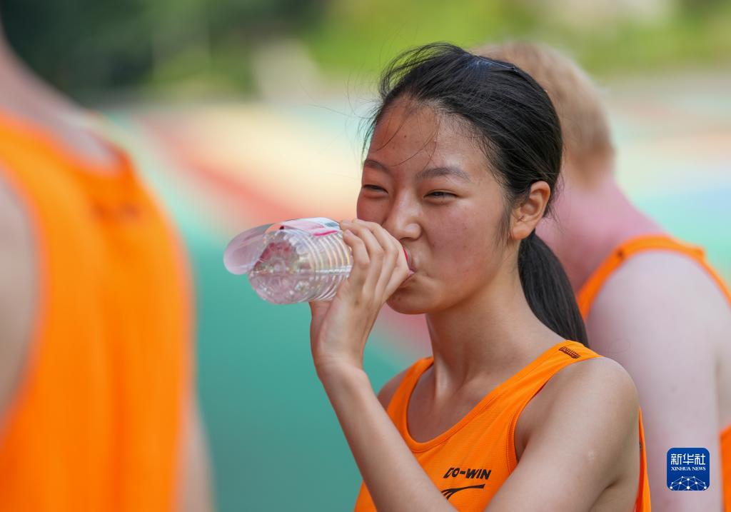 8月4日,重慶市特殊教育中心田徑隊隊員蔣雯雯在訓練間隙喝水。