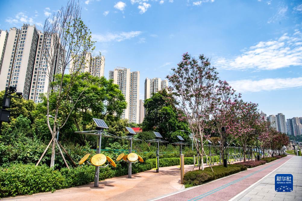 這是8月6日拍攝的位于重慶長江岸邊的九龍灘公園一景。