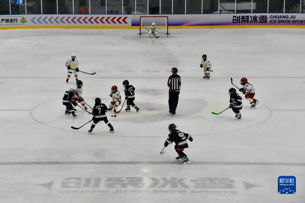 8月5日晚,一場青少年冰球比賽在西安市“創聚冰雪”真冰場舉行(手機照片)。