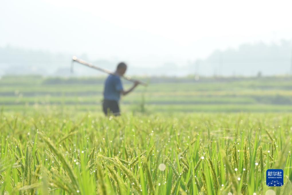 8月7日,在湖南省婁底市雙峰縣井字鎮花山村,農民在下田勞作。