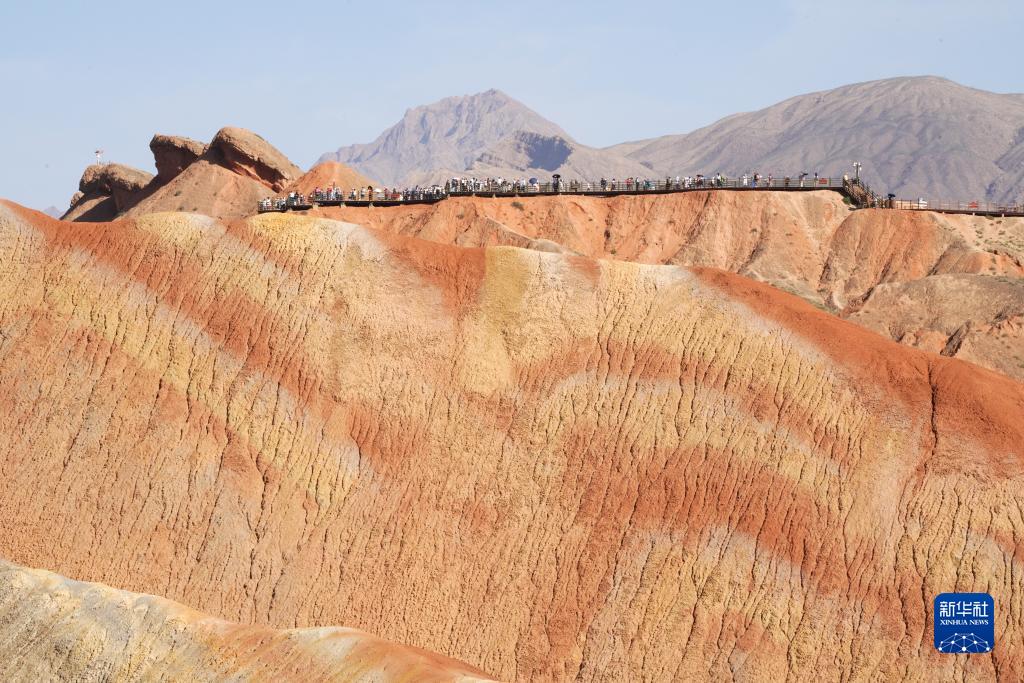 位于甘肅省張掖市境內的張掖七彩丹霞景區屬張掖國家地質公園,是罕見的丹霞地貌與彩色丘陵景觀復合區。進入8月以來,七彩丹霞景區日均游客數量突破3.5萬人次。