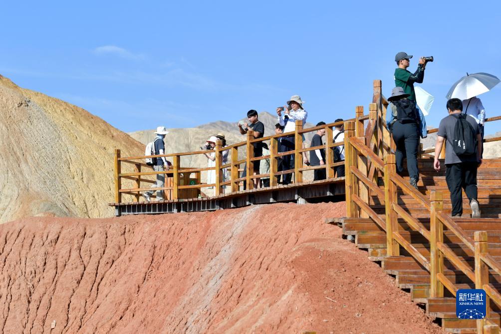 位于甘肅省張掖市境內的張掖七彩丹霞景區屬張掖國家地質公園,是罕見的丹霞地貌與彩色丘陵景觀復合區。進入8月以來,七彩丹霞景區日均游客數量突破3.5萬人次。