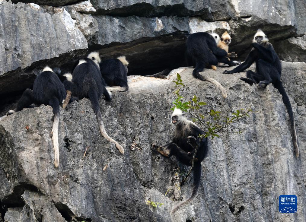 近年來,為筑牢保護屏障,崇左市在保護區建成4個管理站、7個管護點;同時將遠程監控、紅外相機等信息化手段與人工巡護相結合,全天候、全方位跟蹤監測白頭葉猴。最新的數據顯示,白頭葉猴種群數量已增加到約1400只。
