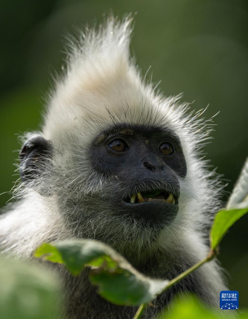 8月5日,猴王“小帥”在查看周圍的情況?!靶洝笔抢钗臍J給它取的名字。