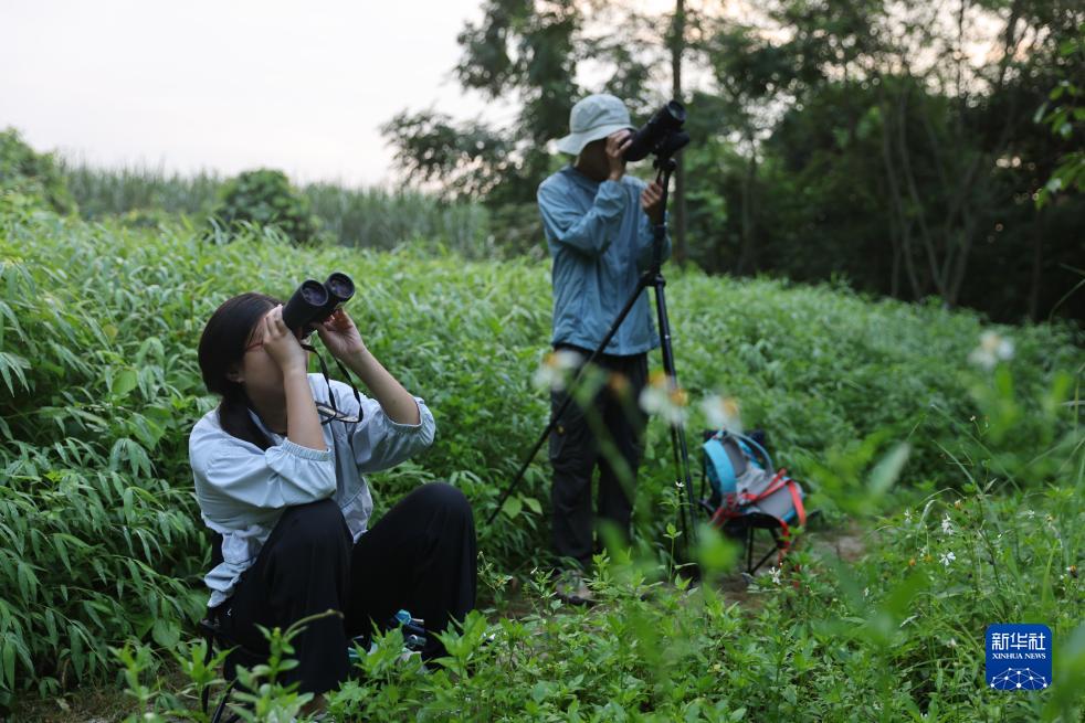 8月5日清晨,李文欽(右)和劉彥辰在觀察白頭葉猴。