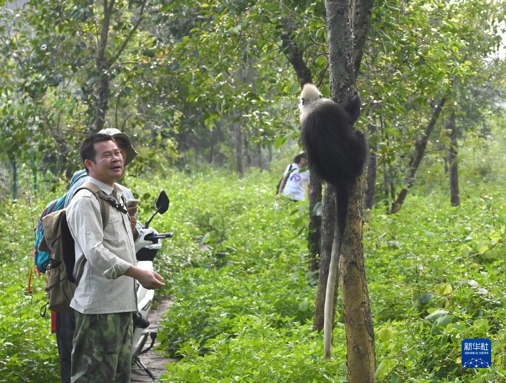 梁志章在近距離觀察白頭葉猴活動(8月5日攝)。