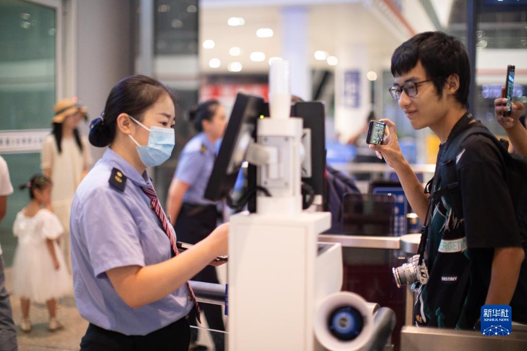 8月8日,乘坐D6171次列車的旅客在檢票進站時拍攝留念。