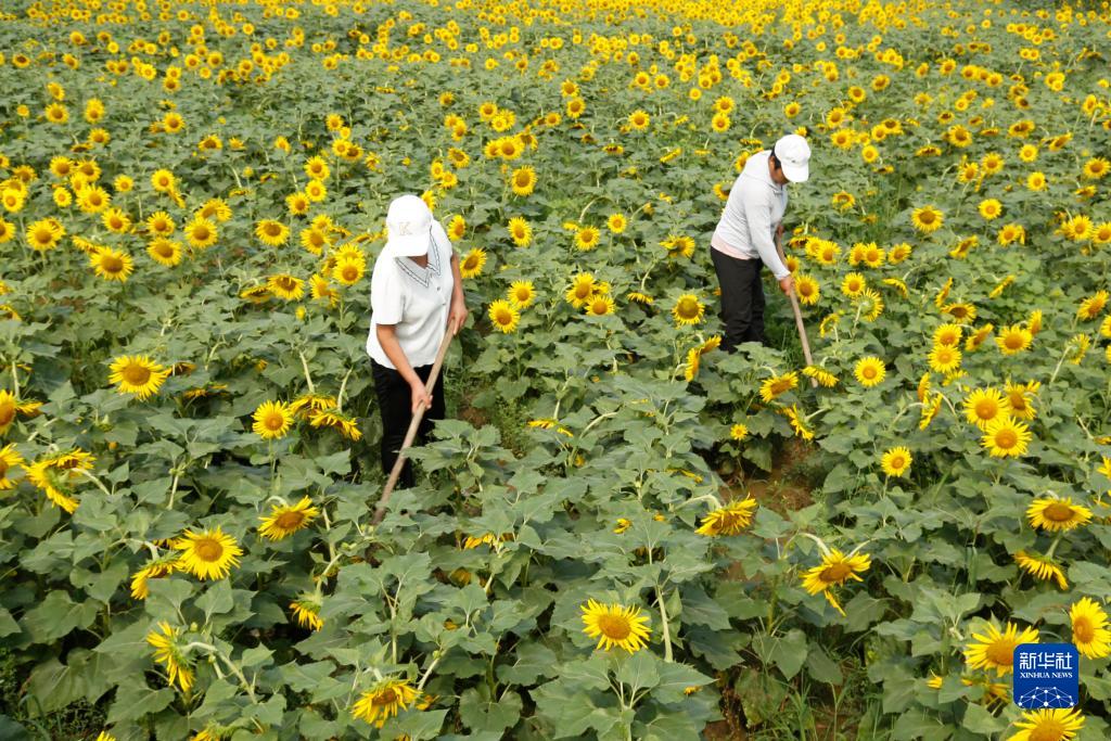 8月8日,河北省邢臺市襄都區泉東街道辦事處辛店村農民在田間勞作。