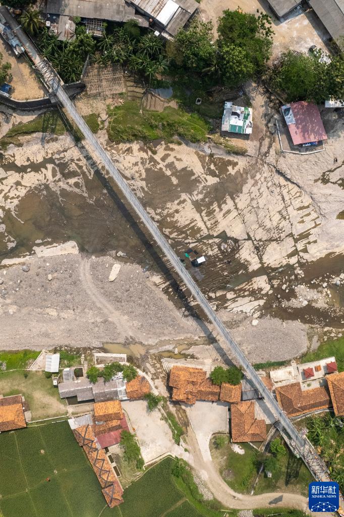 8月7日,在印度尼西亞西爪哇省的茂物,鄉間一條河流的水量大為減少幾近干涸(無人機照片)。
