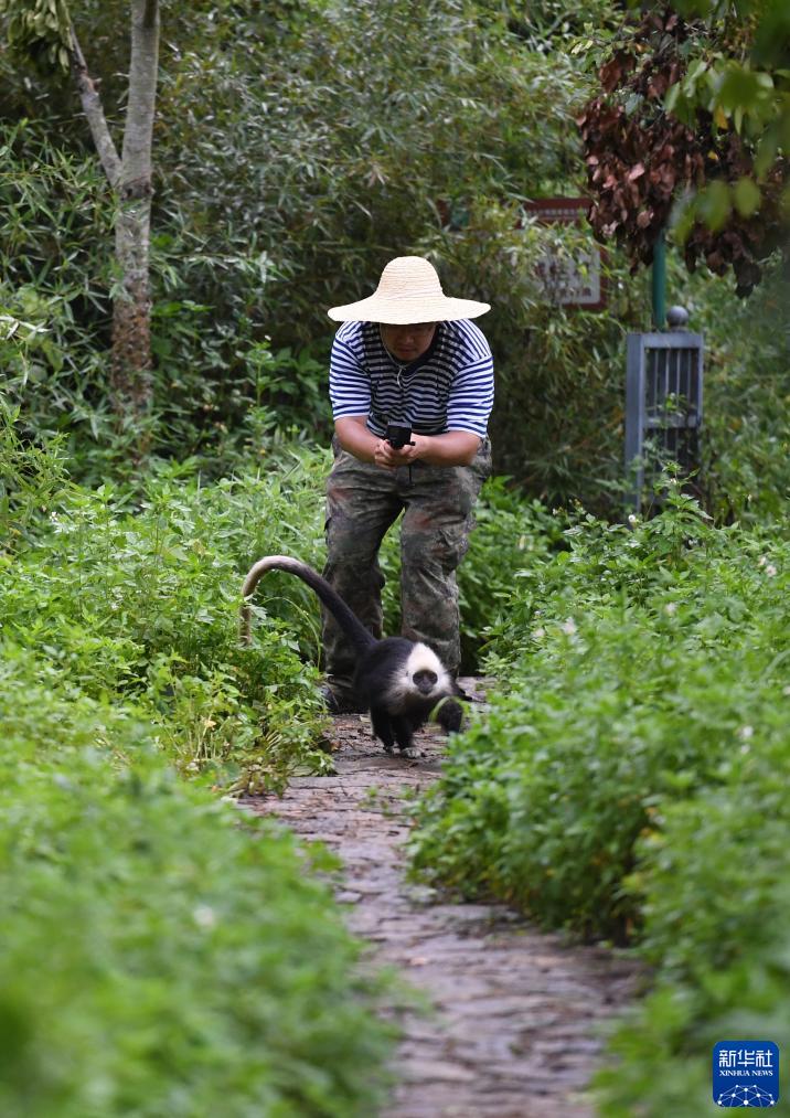 8月5日,在崇左市江州區羅白鄉的白頭葉猴國家級自然保護區,一只白頭葉猴從記者身邊跑過。
