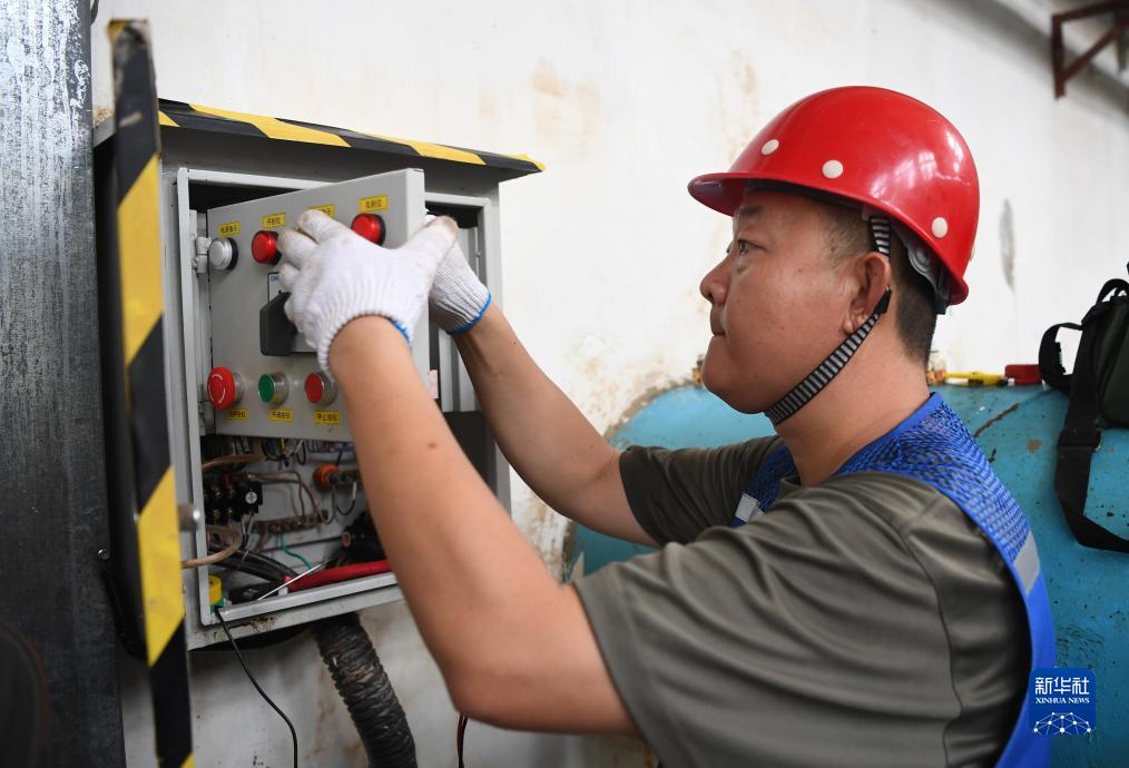 8月8日,工作人員在涿州市城區地表水廠設備間搶修受損設備。