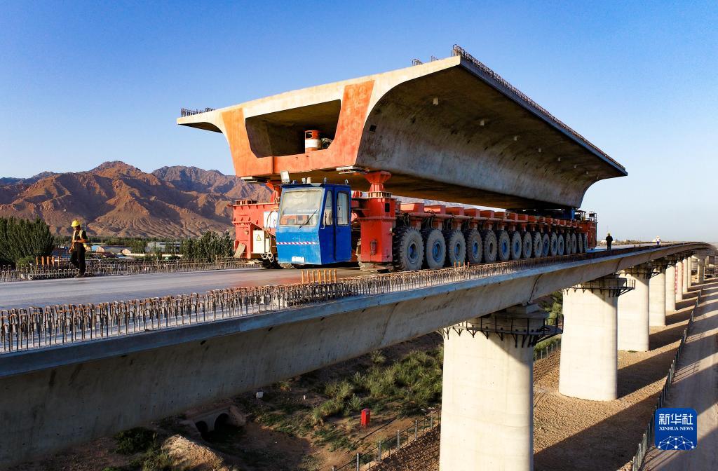 包銀高鐵巴彥淖爾段首座跨鐵路專用線特大橋箱梁架設完成