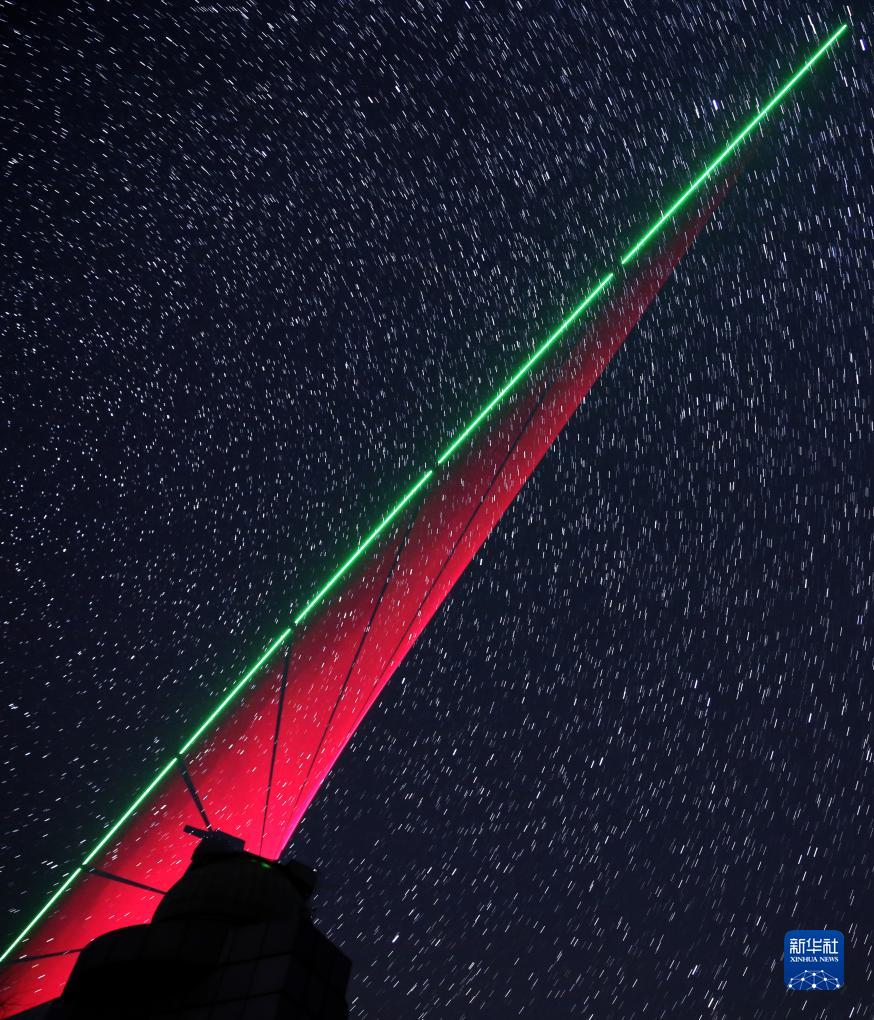 2016年11月28日,“墨子號”量子科學實驗衛星過境,科研人員在河北興隆觀測站做實驗(合成照片)。