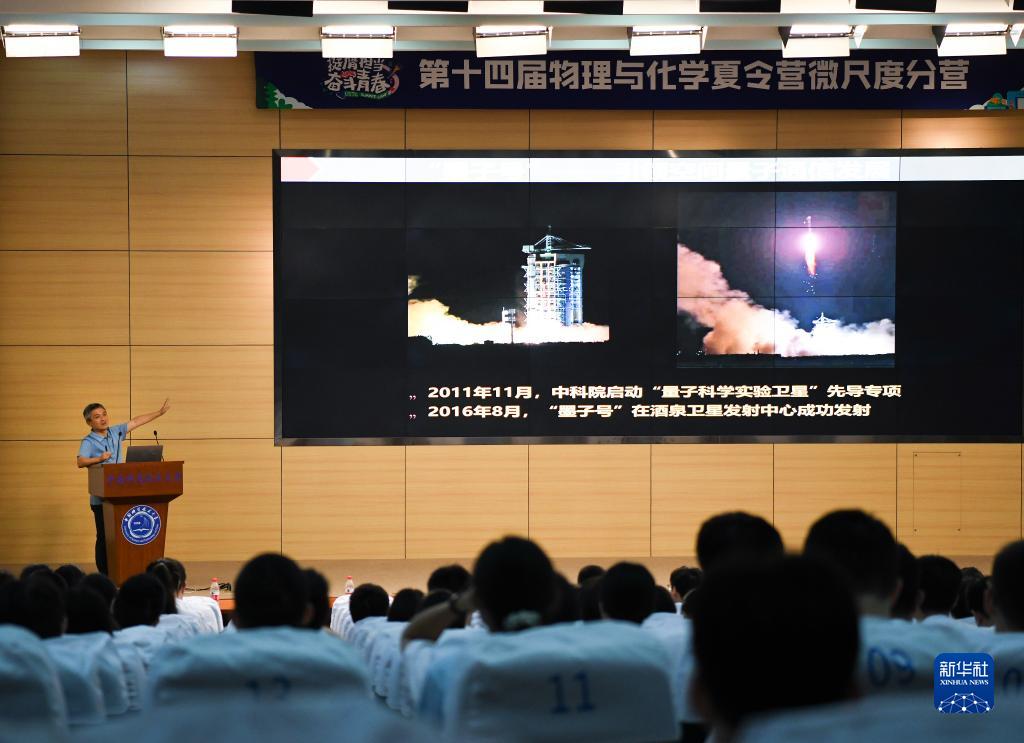 7月21日,在位于安徽合肥的中國科學技術大學,彭承志在第十四屆物理與化學夏令營微尺度分營上作報告。