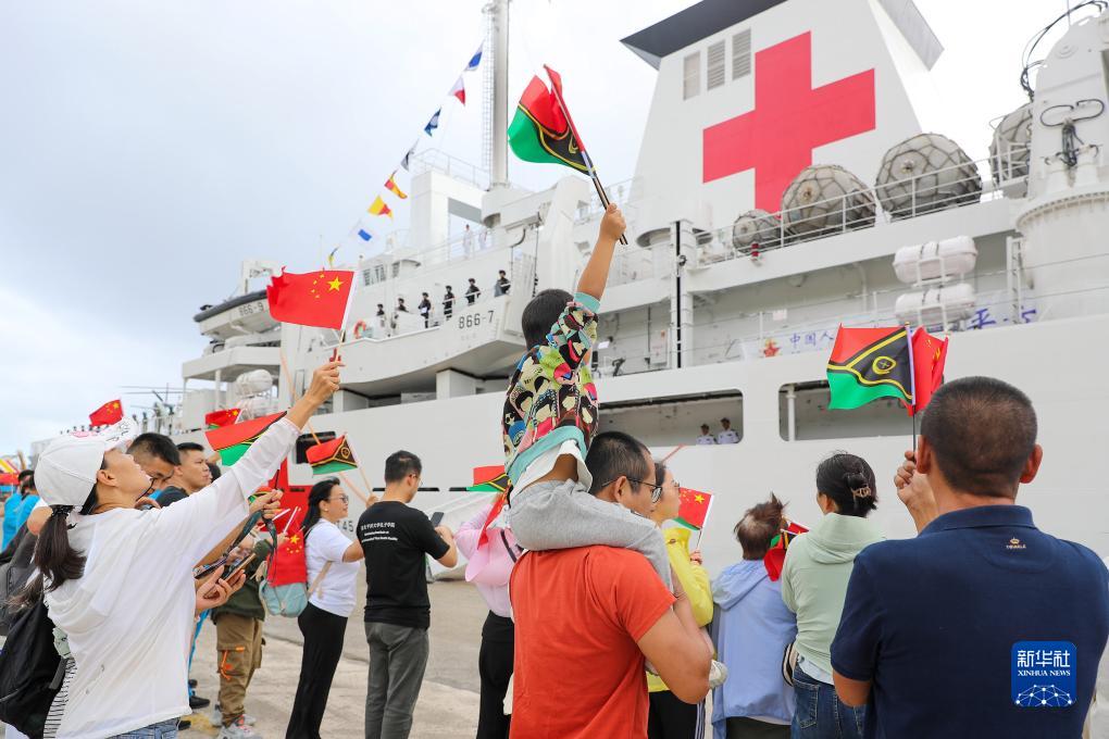 8月8日,中國海軍“和平方舟”號醫院船抵達瓦努阿圖共和國維拉港后受到歡迎。
