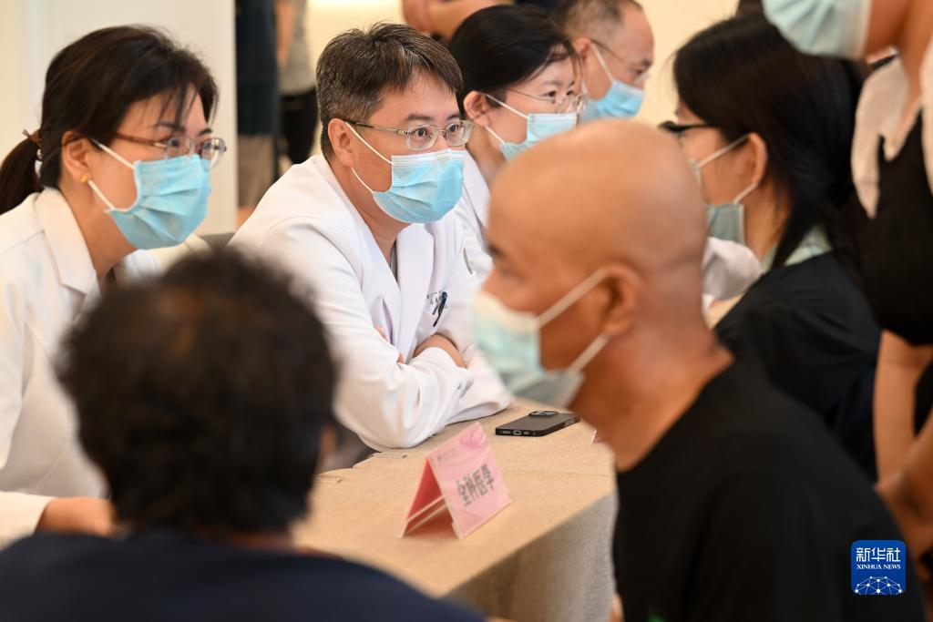 8月8日,天津市第一中心醫院的醫生在健康廣場進行義診。
