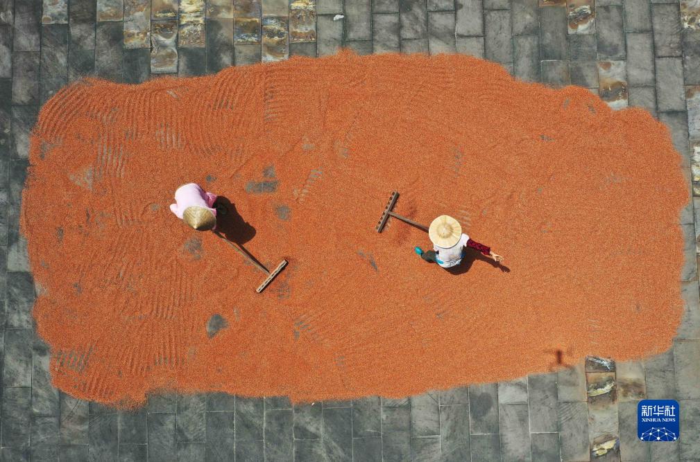近日,貴州省赤水市種植的高粱喜獲豐收,村民們搶抓晴好天氣忙著采收、晾曬高粱。近年來,赤水市積極調整農業產業結構,駐村黨員干部引導農民種植釀酒高粱,采取“黨支部+合作社+農戶”模式,統一提供種子、有機肥和種植技術,實行訂單保底價格收購,促進農業增效、農民增收,助力鄉村振興。