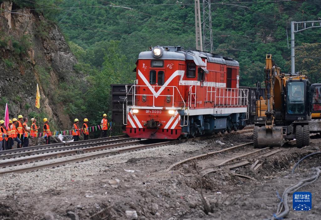 8月8日18時30分許,軋道機車緩緩通過豐沙鐵路珠窩站,標志著豐沙鐵路經過71小時搶通恢復通行。與此同時,首列貨物列車于8月8日14時47分從沙城出發,開往三家店方向。