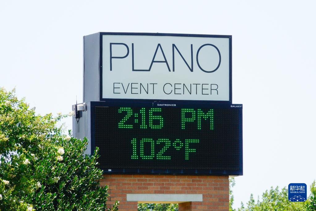 7月18日,美國得克薩斯州達拉斯一個溫度指示牌顯示氣溫達到102華氏度(約38.9攝氏度)。