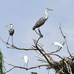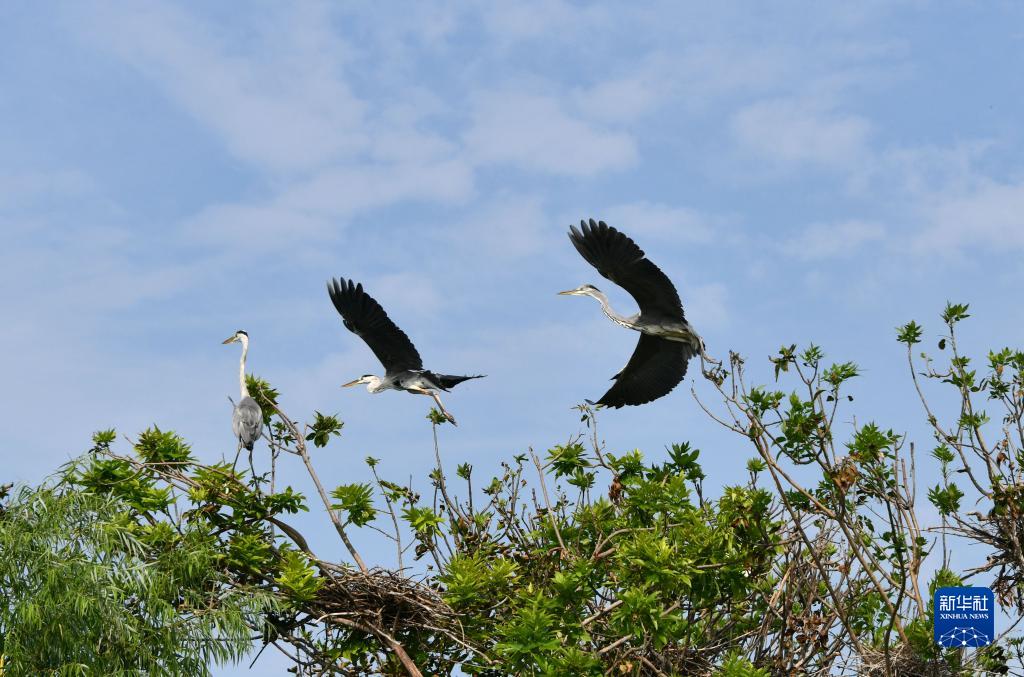 今年入夏以來,大量蒼鷺、白鷺等野生鳥類在山東省成武縣的文亭湖濕地內棲息。
