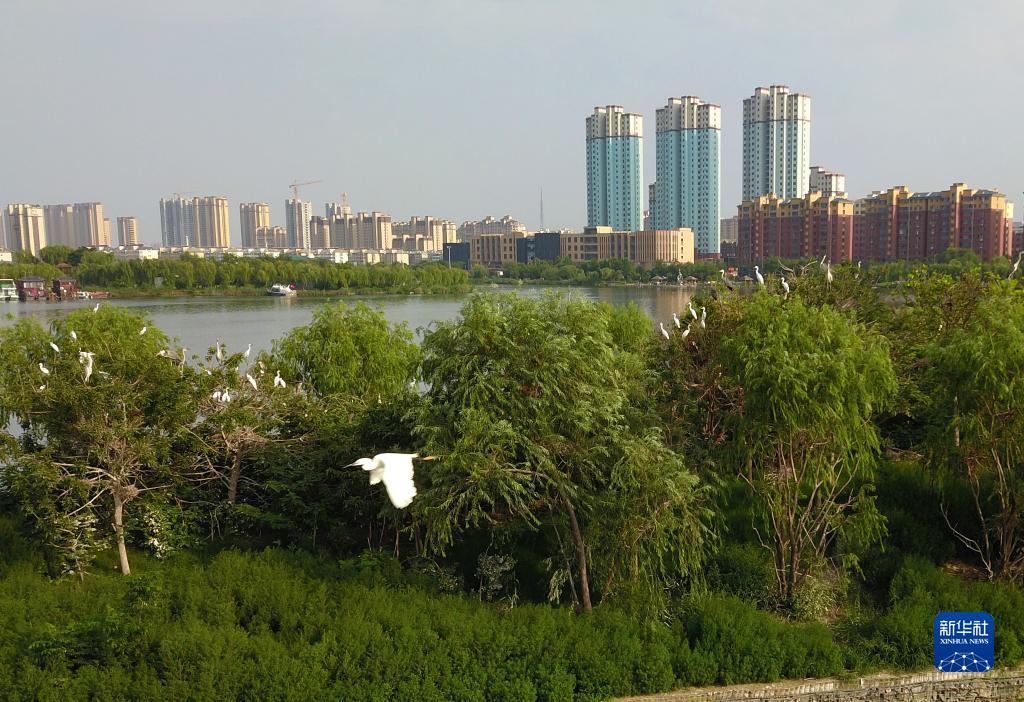 今年入夏以來,大量蒼鷺、白鷺等野生鳥類在山東省成武縣的文亭湖濕地內棲息。