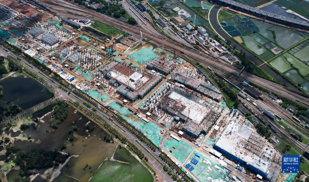??谛潞8酆湍细邸岸€口岸”(貨運)集中查驗場所建設項目(7月21日攝,無人機照片)。