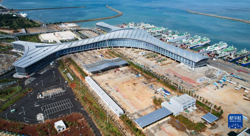 建設中的??谛潞8酆湍细邸岸€口岸”(客運)客運查驗設施、設備建設項目(無人機照片,8月4日攝)。