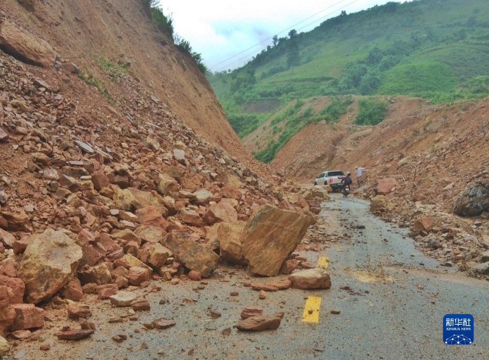 8月5日,在越南奠邊省,山體滑坡致使道路堵塞。