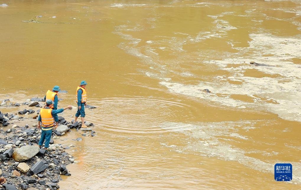8月8日,在越南老街省,救援人員搜尋被洪水沖走的失蹤人員。