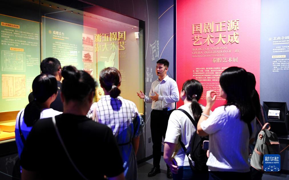 參觀者在中國秦腔藝術博物館里觀展(8月8日攝)。