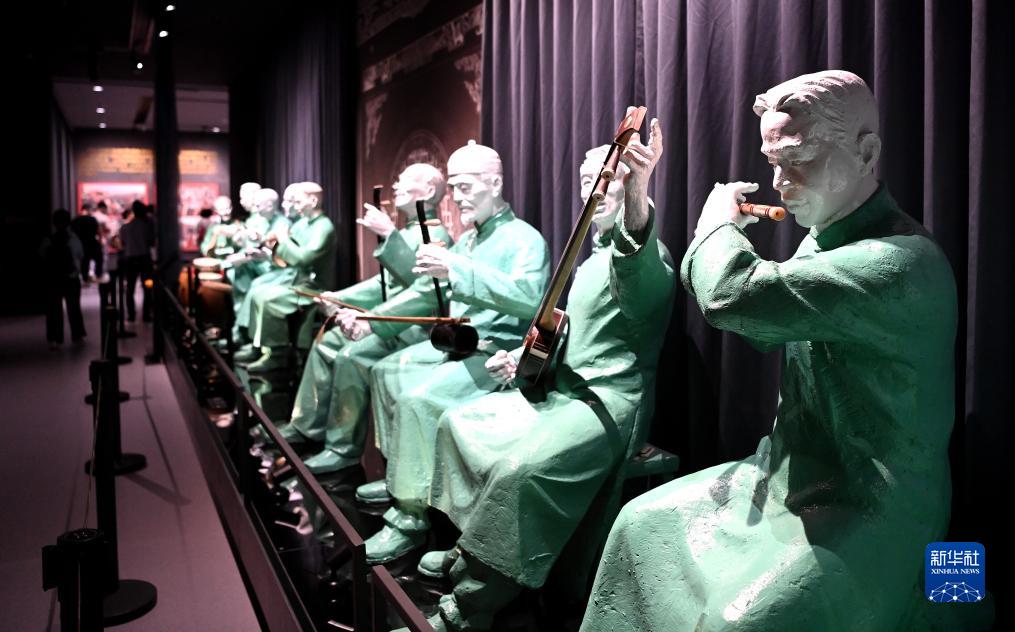 中國秦腔藝術博物館里展示的戲曲藝人雕塑(8月8日攝)。