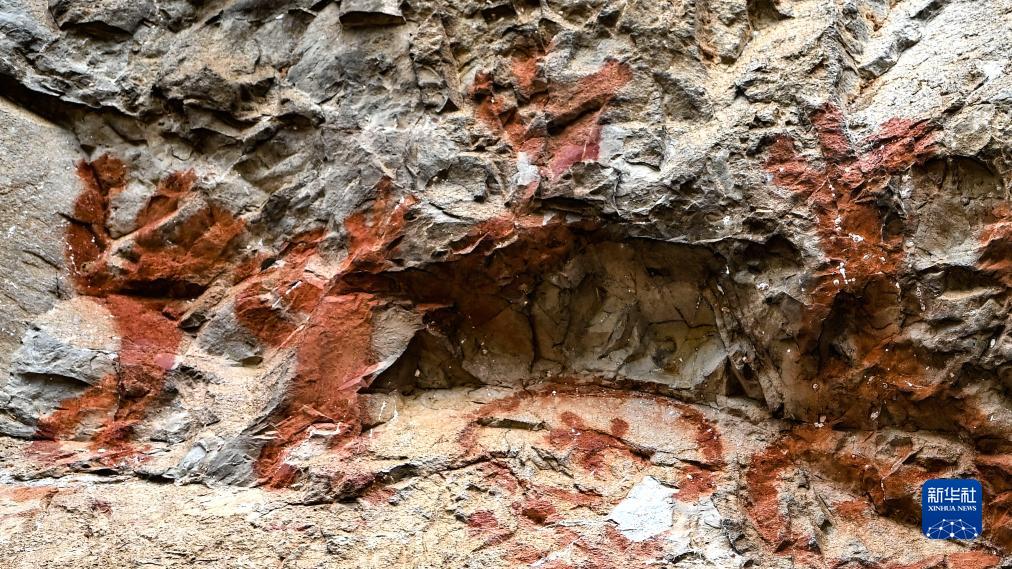 這是廣西崇左市寧明縣的花山巖畫,畫面表現的是某種慶祝儀式(8月8日攝)。