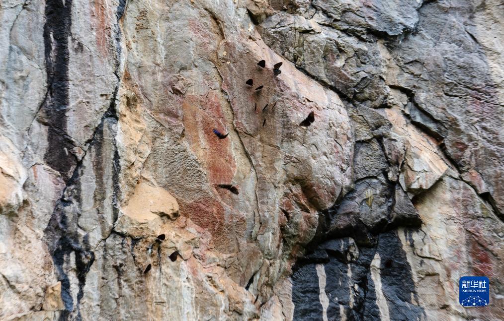 8月8日,一群蝴蝶在巖畫上流連。