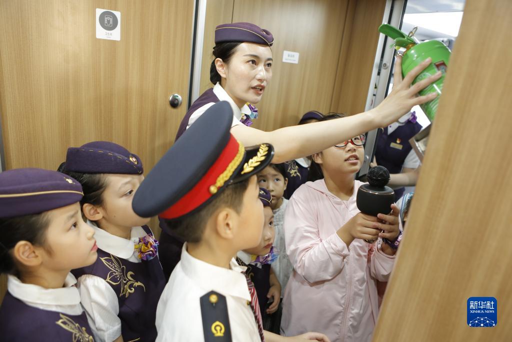 8月8日,小列車長們在了解列車安全知識。