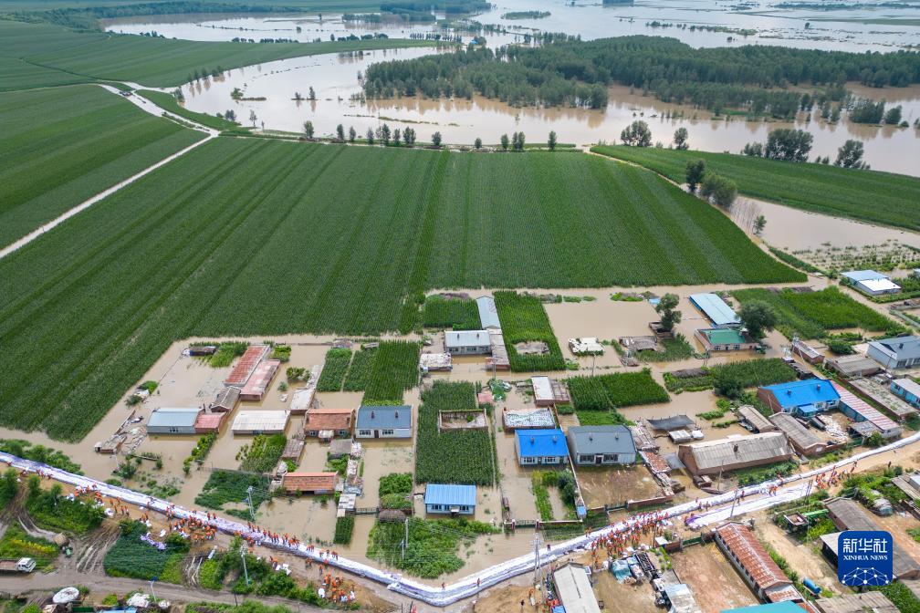 陸軍第78集團軍某旅官兵在構筑堤壩(8月8日攝,無人機照片)。