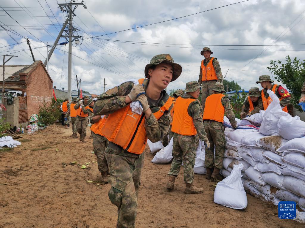 裝滿沙袋,扛上肩頭,疾速前進……一名名年輕官兵身穿迷彩服和救生衣,將一個個白色沙袋筑成一道長約兩公里的“白色長城”。8日正午時分,在黑龍江省哈爾濱市雙城區萬隆鄉增產村,來自陸軍第78集團軍某旅的800余名官兵奮戰在抗洪一線。