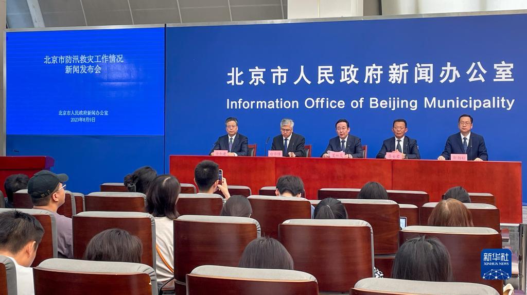 8月9日拍攝的北京市防汛救災工作情況新聞發布會現場。