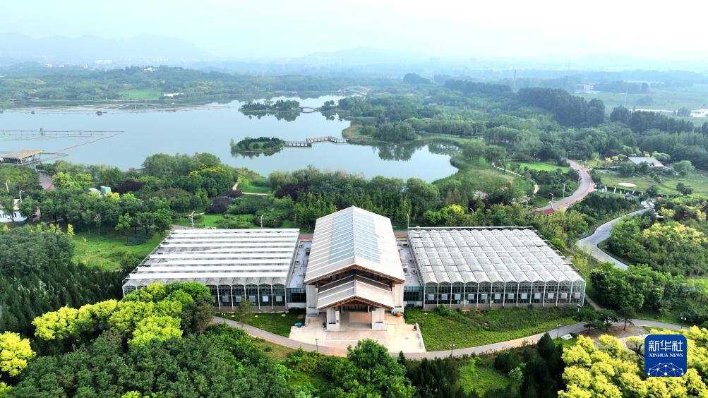 8月9日拍攝的位于河北省石家莊市鹿泉區龍泉湖公園內的一處公園書房(無人機照片)。