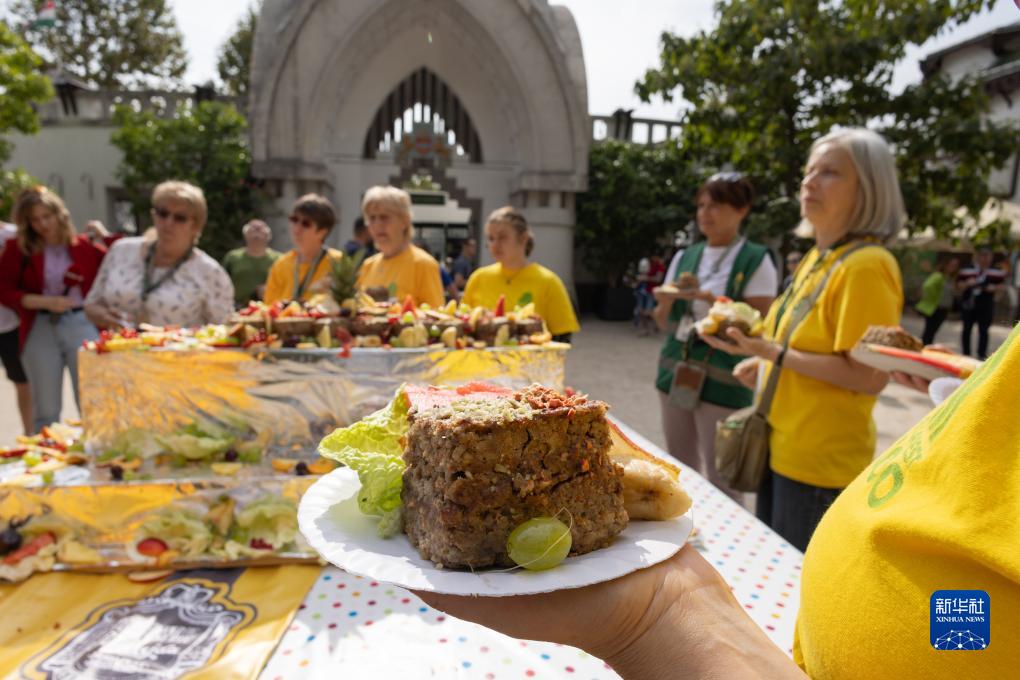 8月9日,在匈牙利布達佩斯動物園,人們品嘗特制蛋糕。