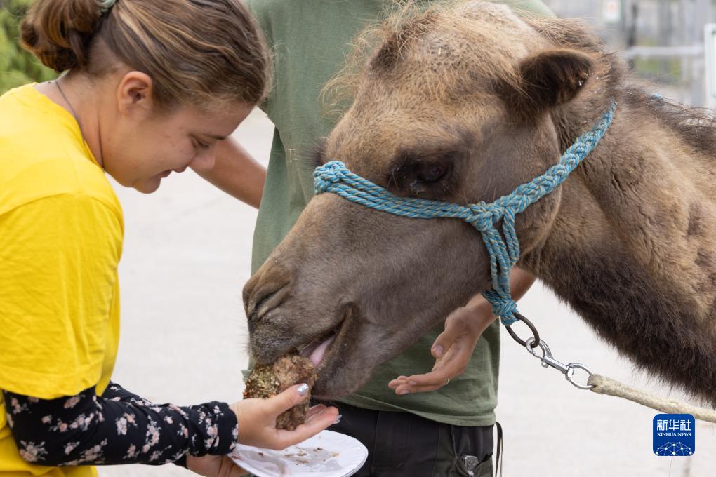 8月9日,在匈牙利布達佩斯動物園,駱駝品嘗特制蛋糕。