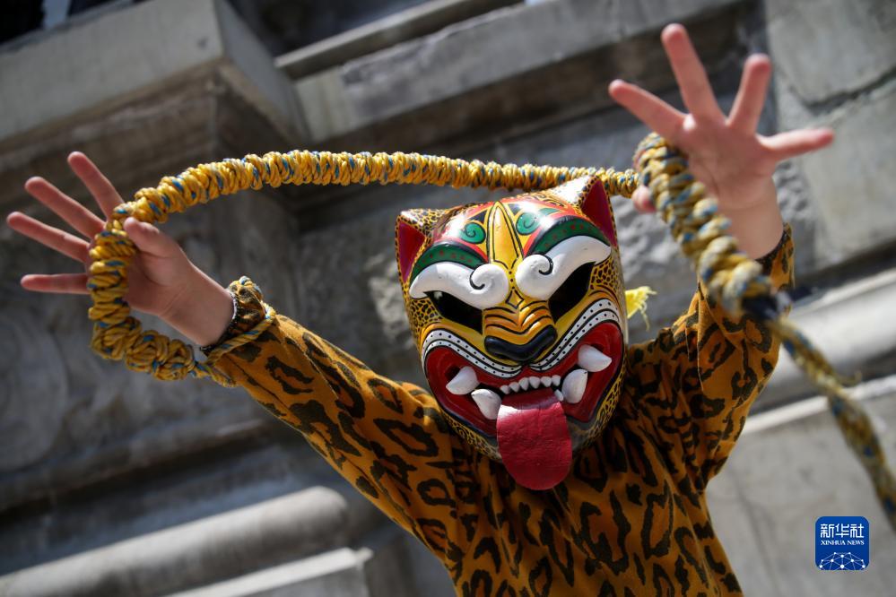 8月9日,在墨西哥首都墨西哥城,演員身著傳統服飾參加世界土著人民國際日慶?;顒?。