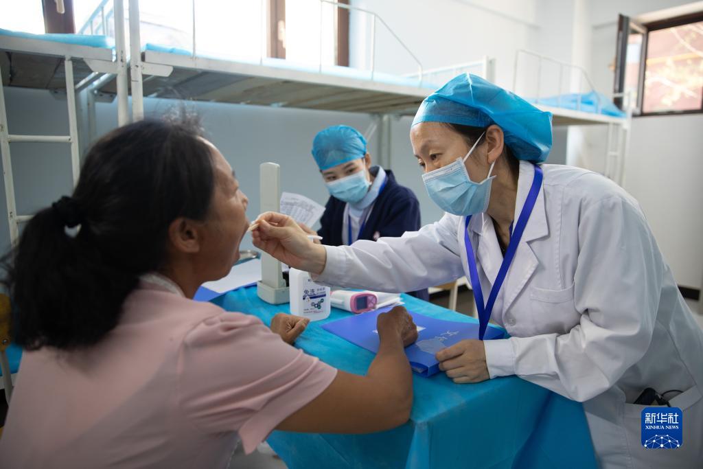 8月9日,在五常市時代中學集中安置點,醫生為居民做檢查。